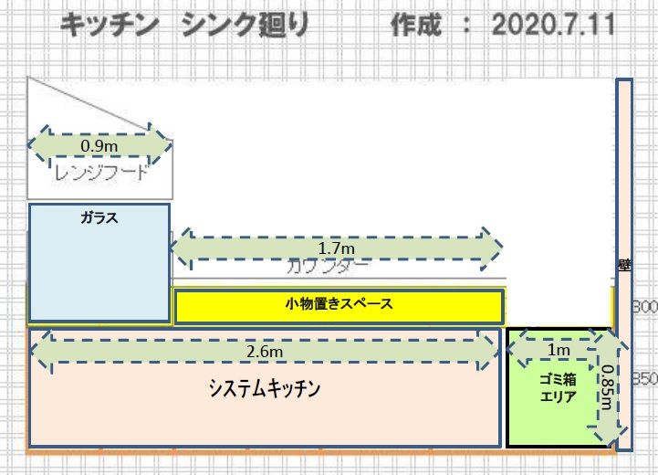 今回 H家で計画しているキッチンシンク廻りの奥行きは、