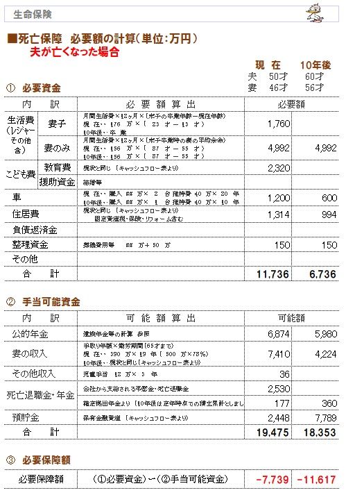※で、夫婦それぞれの死亡保障必要額の計算。