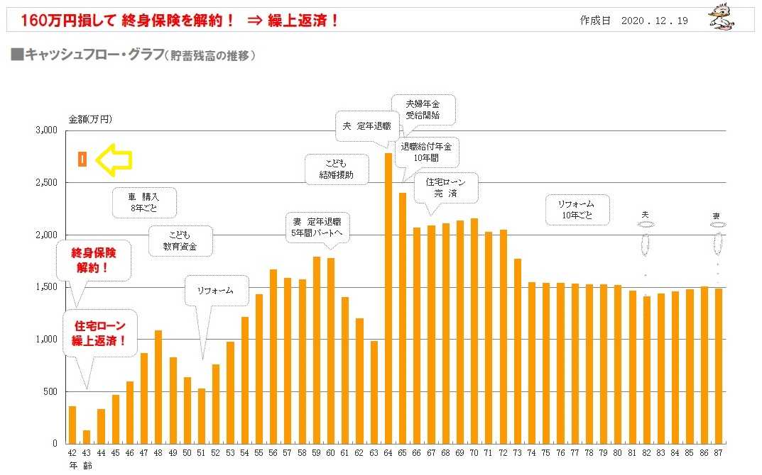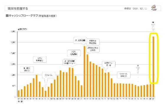 ※キャッシュフローグラフ(1年ごとの貯蓄残高の推移)。