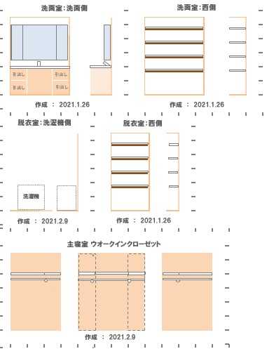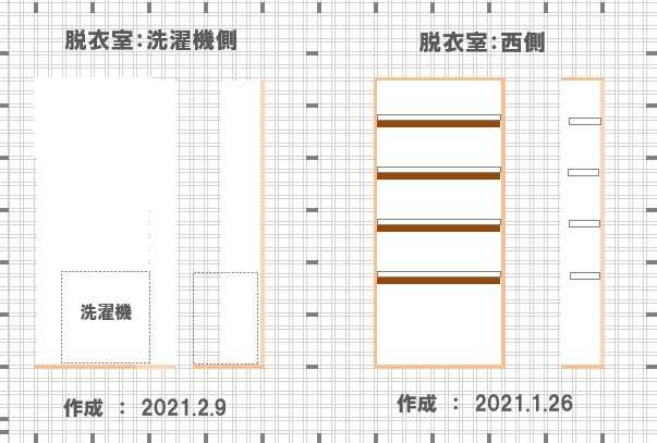 什器プランで脱衣室の洗濯機の上は乾燥機を置くかも