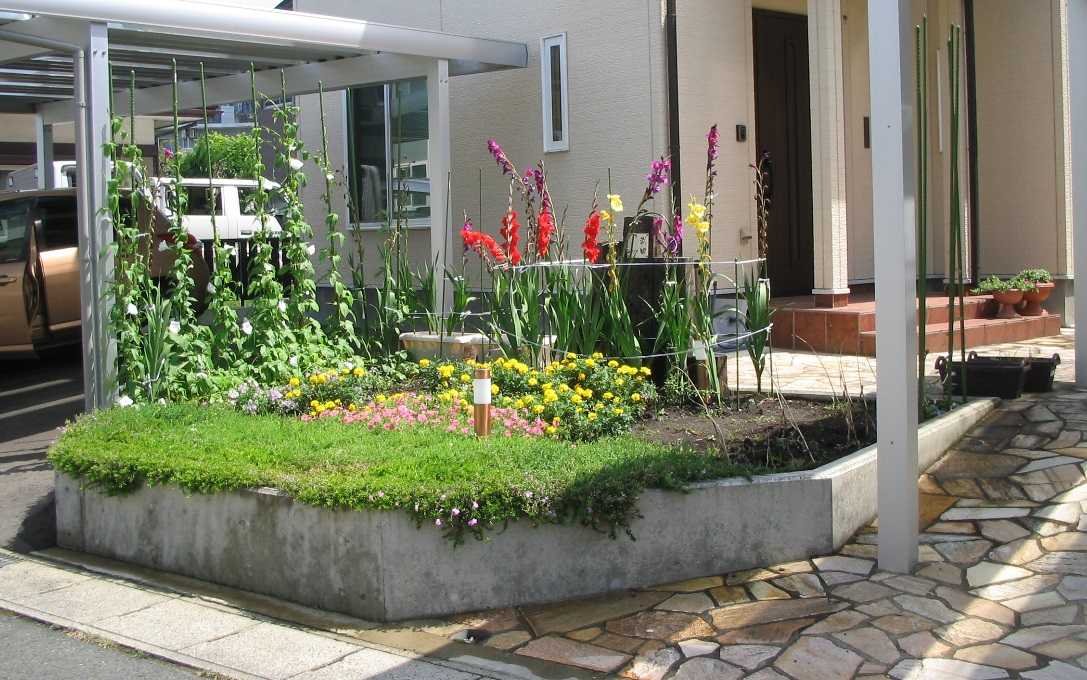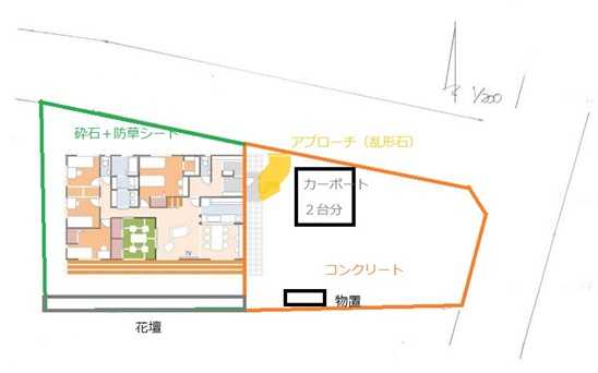 ※花壇の右下から玄関までの仕上げが、乱形石です。