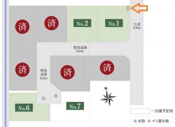 「No.1」の区画にゴミ置き場を設置する計画です。