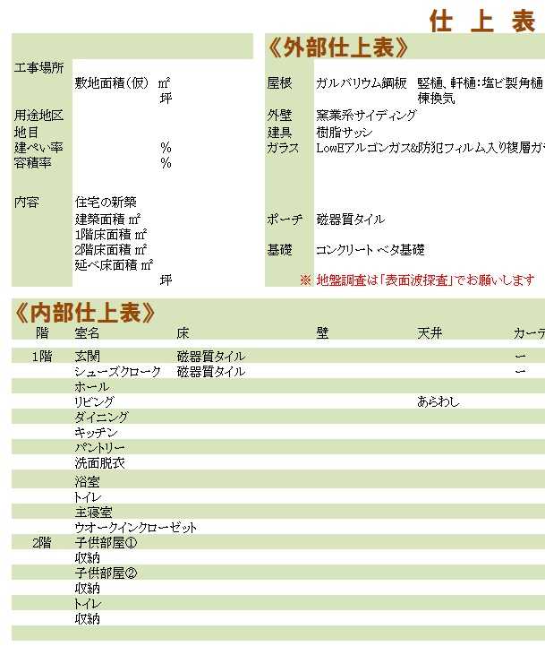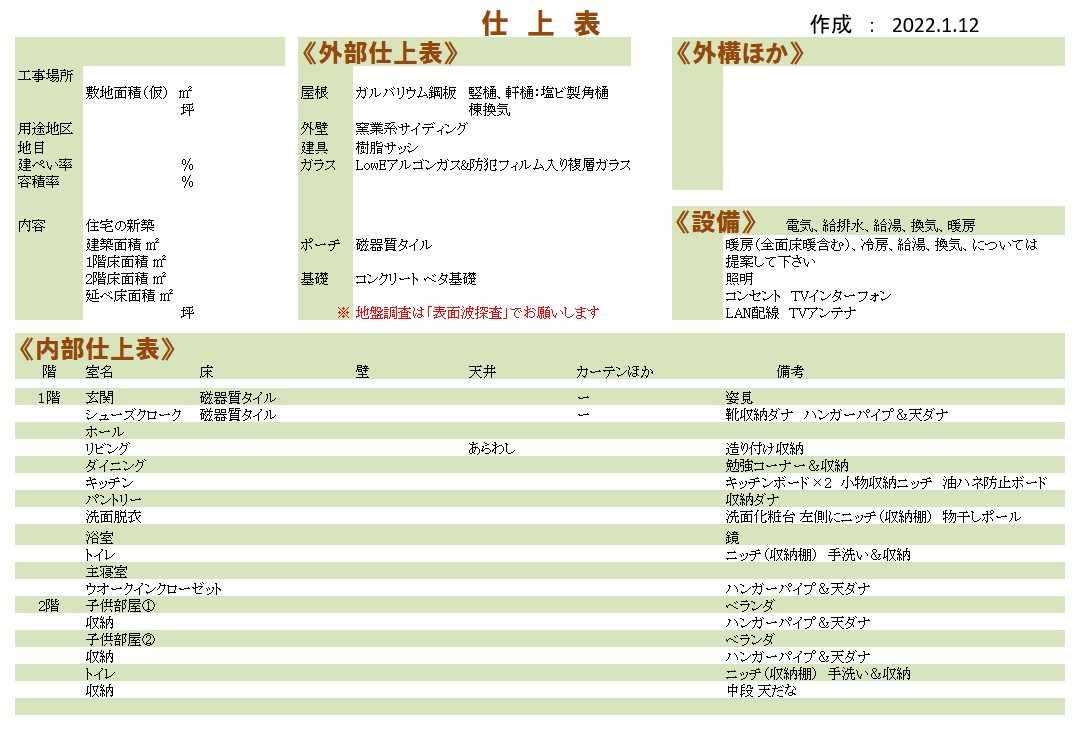 ための 「4プランと仕上げ表」を作っています。