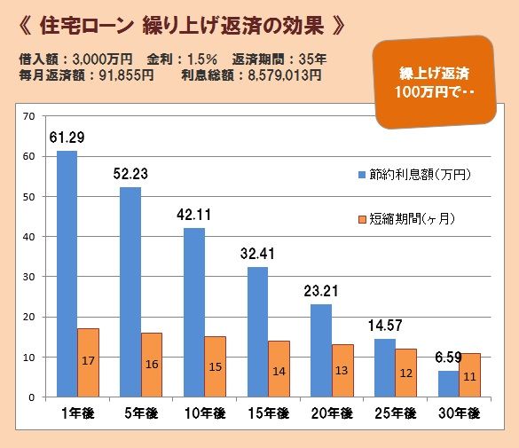 5年ごとに約60万繰上げ返済(期間短縮型)×6回