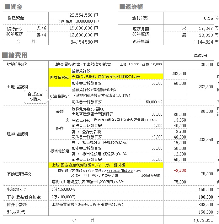 ※なお、マイホーム取得計画で各種金額を
