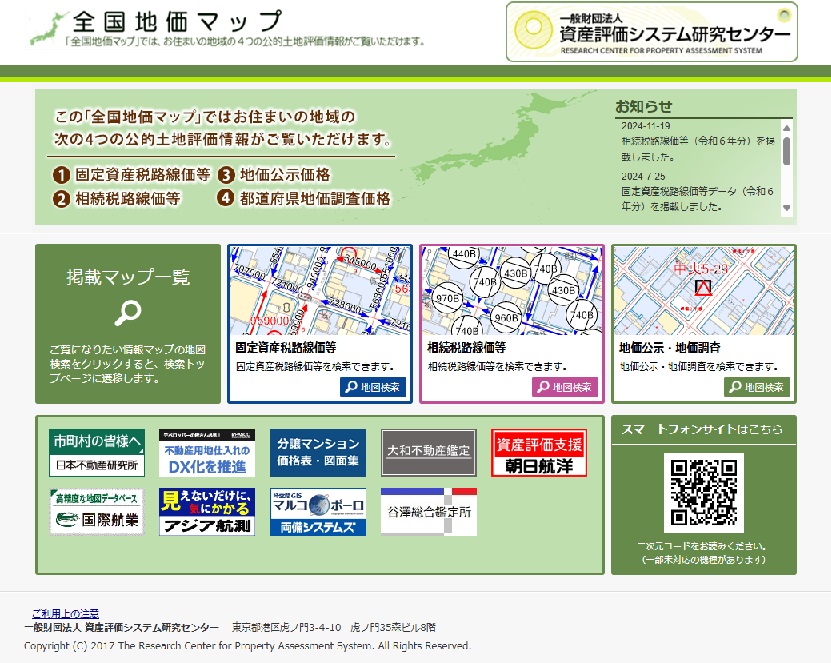 全国地価マップでは、固定資産税路線価の他、