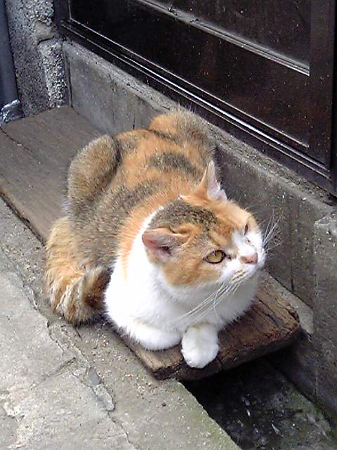 これ、最初の頃のチャネコです長いです・・・撫でれるくらいに馴れましたが、まだ良く噛みます(本気!)これ、最初の頃、足元で撮ったチャシロネコです。凛々しいでしょ?毛並みのやわらかい美猫です(♂のくせに)めちゃ馴れてて、ホントに野良猫?と疑いたくなります。こいつの兄弟は絶対に撫でさせないのにねでも、どんな警戒心の強い猫も、近づくと怒りまくる猫も、みんな人の愛情に応えれる、優しい猫なんです・・・人を信じては生きていけない猫もいます。虐待とか。私を警戒心一杯の顔で見る猫も、うなりながら、あげた魚をひったくって行く猫も・・・私は大好き!です。