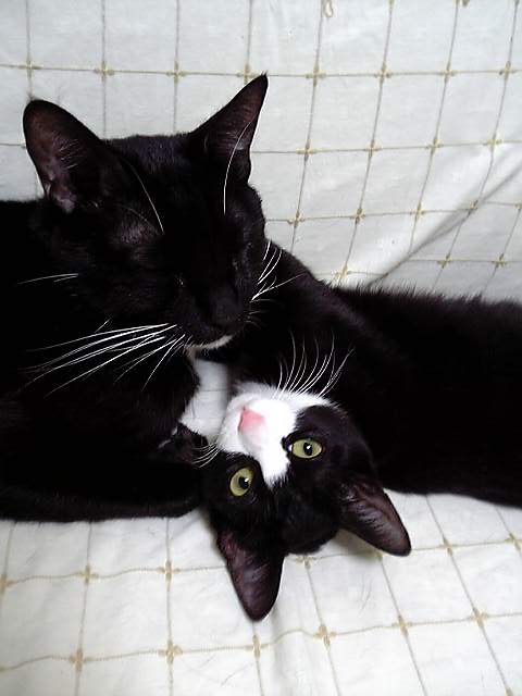 新家族のこたみとたびの仲なんですが・・最初は良くなかったんです・・たびがこたみを敵視して、追いかけて噛んだりこたみも気が強いのか反撃して、でもお互いに気になるらしくて距離にしてこんな感じ・・でも最近はねえ・・良く、あれ?どこにいるの?と探す事も。どうやら二匹で遊んだあといちゃいちゃしてるみたいほら!見つけましたちょっと!なに?二人の時間を邪魔しないで!お互いの姿が見えないと、子供を捜す親のような鳴き声で探し合うのです。うちの実家では先住猫と新入りがうまく仲良くなったためしが無かったので安心しましたもう一匹増えると猫関係バランスが崩れるかな?今からちと心配
