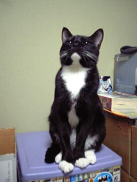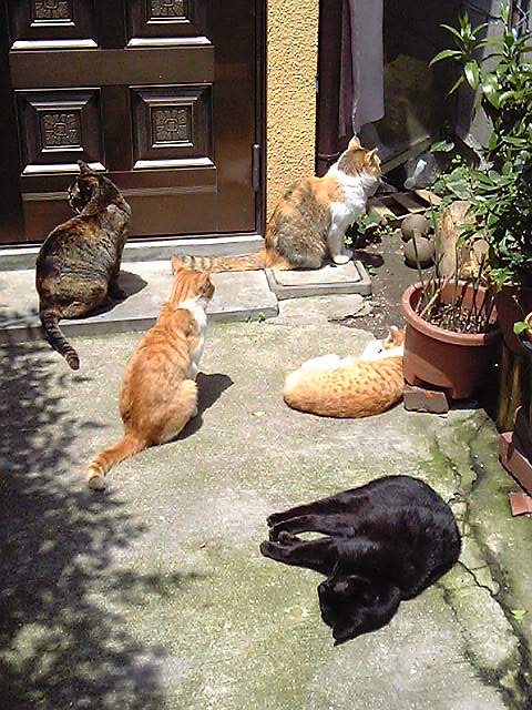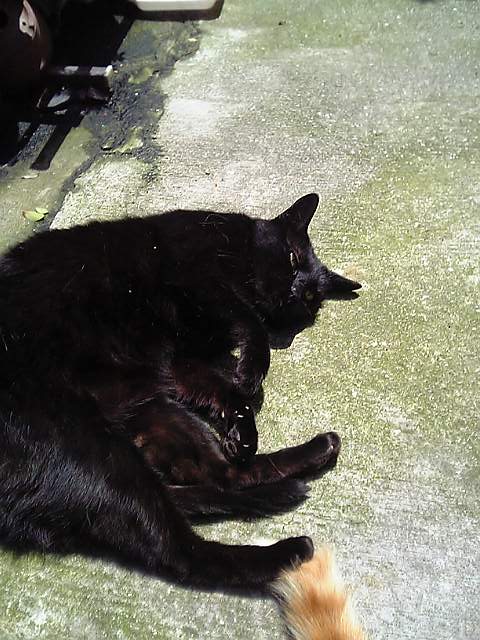でも、ですね・・・うちの歴代飼い猫たちは・・・トラ、シロ、パンダ、って・・手抜きじゃねーか!とお叱りを受ける様な名前ばかり。(中にはランって名前もありましたけど)その訳は・・最初はみんな野良の外猫なのです数が多いので、柄の名前で呼ぶんです。番外として、おばさん。とかボス。とか、デベソの、でべ。って名前もそして不妊手術や、病気の看病で家に入れたりして家に居着いてしまうのです。そして間抜けな名前だけが残るのです・・・え?いえいえ、別に問題はありませんよ。可愛い猫たちですから・・・ただねぇ・・ただ?ただ何です?動物病院ではちよっと、恥ずかしい・・今日の診察はパンダちゃんですか?などと大きな声で言われると、(⌒▽⌒)アハハ!まわりの視線が冷たい!(⌒▽⌒)アハハ!そうだ!そろそろこの子も予防注射の時期ではないか・・・・日向ぼっこで気持ち良過ぎて、完全に目がイッてます・・・この子の名前はもちろんクロです