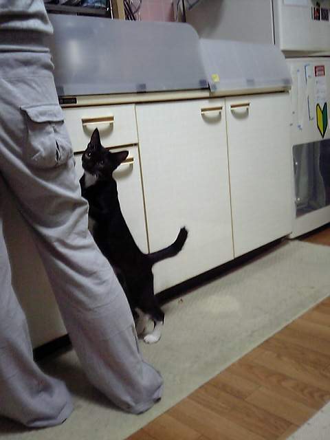 楽天ブログもご無沙汰でした・・月日のたつのは早いですねぇ・・・皆様、いかがお過ごしでしょうか?私は家のパソコンの調子が悪く、余裕の無い毎日を過ごしている為に、ブログの更新もなかなか出来ません見ると一日のアクセスが2~3程度・・笑えます。コメントくれなくてもただ訪問してくれる人が多くいるだけで嬉しいもんですよね・・・て訳で、今回はうちの暴れん坊王子のタビの好物について・・変わったものが好きなんです。もちろん、猫らしく魚の刺身や鳥肉なんかも好きなんですが(主食はドライフード)台所での料理に興味を持ち始めた半年ぐらい前、床にポトリと落ちたキャベツに興味津々・・・食べました。それからというもの、色々な食い物にアタックするようになりました。レタス、ジャガイモ、ブロッコリー、少しづつですがクリアー!!トマトなどの酸味のあるものはダメみたいです。お米も食べますが猫の口の構造上、ボロボロとこぼしてしまいとても汚いです(笑)納豆も好きです。納豆好きの猫がいるのは聞いたことはありましたがまさかうちのタビが納豆を食べるとは・・・ネトネトが口の周りについてとても汚いです(笑)最近、一番の食いつきはとうもろこし!塩なしで茹でてあげると20~30粒は食べます。猫の身体に悪いものかどうか一応、調べてるつもりやけど大丈夫かなぁ・・・悪いと知りながら欲しがるのでイカなんかは少しあげたりしますが皆さんの愛猫は大丈夫ですか?早く~食わせろよ~!