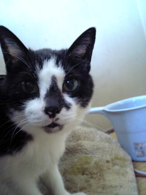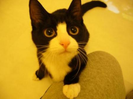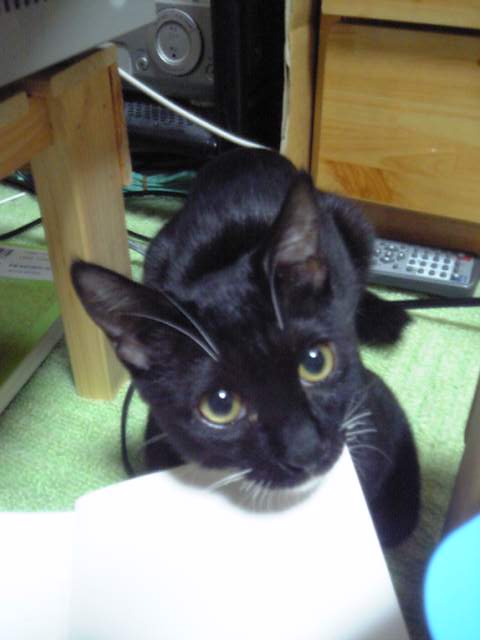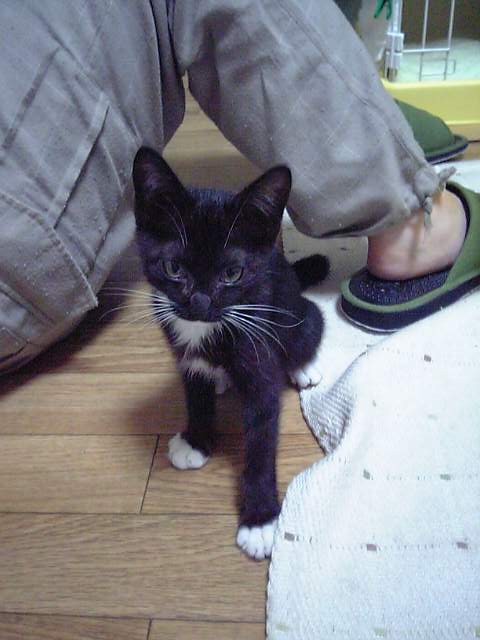 先月に子猫を保護した。鼻水と目やにでひどい顔でした・・周りに野良達は沢山いて、捨て猫も珍しくない。しかし・・野良猫全てにほえられ、噛まれ、それでも近づいていく。ん?人間にもついてまわる・・ダメだな・・外では生きれないと判断。病院に連れて行き、自宅に監禁・・いや、保護。保護。自分のパソコンの知識がバカな為、知り合いに声をかけまくる。「へぇ・・種類は?なんや雑種かい。いらんわ」「うちはマンションやから」(うちもバリバリの賃貸です)「猫きらいやねん」「ワクチン?なにそれ?」主に大阪の住宅事情と猫に対する知識の不足が原因か・・職場にはコーギーやら豆柴やらを飼っている人は多いのに猫は飼うと凄い魅力を持った動物なんだぞーっと叫びたい!とりあえず・・まだ家にいるのですが・・情も移って来ますし・・ああ・・里親探しはむじゅかしい・・ おにゃ?