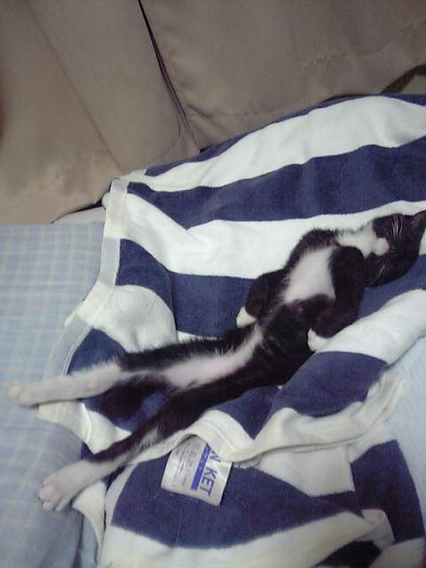 さぞや気持ちいいんでしょうね・・・全身脱力状態・・いやあ、羨ましい・・猫ってたびの幼少時代の写真を見つけたので載せてみました今はもうこんな体勢では寝ませんがよく眠る健康体です。 なんじゃこりゃ?まあ・・君は小さいときは可愛かったよ・・うん! そう?今もでしょ?俺が可愛いのは・・んん?? ・・・自画自賛猫たび・・・
