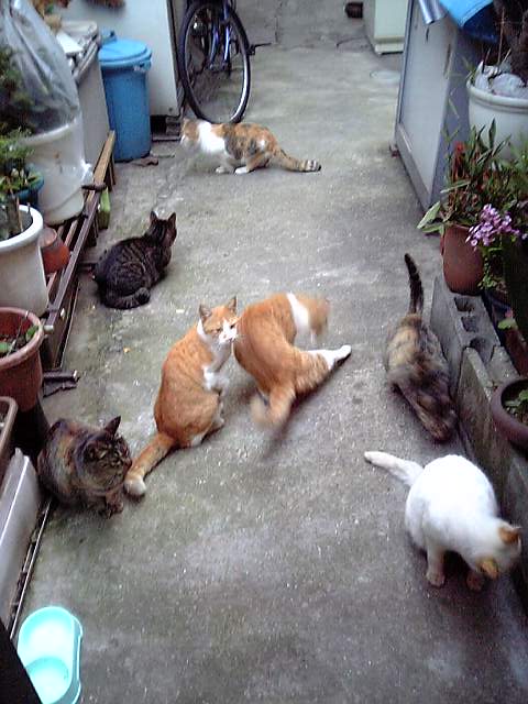 野良猫は、飼い猫と違い寿命が短い・・・家の周りの猫たちにご飯をあげ始めて二十年にもなる。いなくなる猫や事故で死ぬ猫、伝染病で力尽きる猫・・病院に連れて行き助かった命も多いが、看取った命は遥かに多い・・・みな捨てられ迷い込んできた猫たち。平均五年といわれる野良猫の寿命。その猫たちは厳しい自然環境下で生きている。雪の降る寒い日も外で・・そんな野良猫にとって一番幸せな時はきっと食べてる時だろうと思う。だから・・野良猫に餌をやるなと怒るオヤジやおば様が少しでも、優しい気持ちを持ってくれたらと思う今日この頃・・・ほら!こんなに可愛い・・