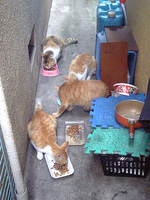 広い家に住み、ネコを五匹ほど飼い、飼い猫と毎日戯れる。野良ネコには目もくれず、飼い猫一筋・・・でも・・無理だなぁ・・ネコ好きには、そんな人はかなりの少数派でしょうね(^_^;)私も,周りからはかなりの猫バカと言われますが、このブログで出会った猫好きな人達には到底及びません。猫嫌いな人も、お願いだから危害を加える事だけはしないで下さいねさあ!みんな、ご飯にしましょうか