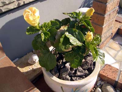 昨年夏に買った鉢植えのハイビスカスが、戸外で霜が降り氷が張る季節になってもつぼみを付け、花を咲かせてくれています。朝夕冷え込むので つぼみ は小さくなり、花もしぼみながらの開花です。部屋に入れ、冬を越させてやれば良いのですが、モノが多く置き場所が~(^^!そのハイビスカスですが、赤、クリーム、オレンジと3鉢購入、その中で赤のハイビスカスが一番つぼみを付け、葉の色も黄色く変色して来たので場所を作り、赤だけリビングルームに移動しました。朝晩の冷え込みを避け、日中ひざしのさし込む部屋で、赤い花を咲かせ続けてくれる!と思ったのですが・・・。あまりの環境変化の為か!7つほど有った つぼみ はすべて落ちてしまいました。外で越冬させた方が良かったのかなあと? と思いつつ、このまま部屋の中と戸外の鉢植えを見守る事にっ!そういえば、子育ても 良かれ と思って子供にした事がっ!なんてムカシを思い出す~(^^!