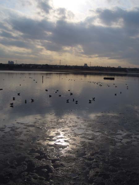 一年の計は元旦にあり。という事で元旦ランに!ホノルルマラソン、リベンジに向け走り初めっ~初日の出ラン を考えていたのですが、昨夜飲みすぎ!目が覚めたら陽はすでに高いところに・・・。一年の計は、初めから危うい~ホノマラ、リベンジの~と言うより、飲みすぎたアルコールを蒸発させるため?? ゆっくりランニングです~(笑) 谷津干潟周回コースに出ると、干潟にはウミネコや鴨が群れていて、バードウォチングや散歩に来ている人、多々有り。穏やかな元旦の午後、ランニングは一時バードウォッチングに変わり、デジカメで干潟を写していると、気合が入ったランナーが、横を通り過ぎる! 一年の計に戻りランニングに復帰!谷津干潟を2周、約12km走って一年の計を終了~(^^!