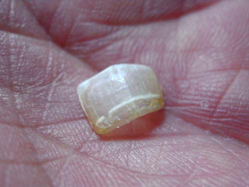 昨年12月に走ったNAHAマラソン、、、シューズが新しく硬かった為、先端部が指に当たり、走り始めは違和感、徐々に痛みに!練習で何度か履いて洗っていると、それなりに柔らかく馴染んで来るのですが、失敗しました!新しいシューズ・・・フルマラソンを走りゴールしてから左足、人差し指がジンジン経験上、爪はがれるな!の予感!!日が経つにつれ痛みは消え爪の色にも変化なし、、、はがれず治った??と、痛めた爪の事など忘れた頃でした。そして昨日、靴下を履くと指の先端で引っかかるものが・・・靴下を脱いで見てみると、引っかかっていたものは、はがれかけ指から浮いた爪でした。 指先で浮いた所を押し上げると、ポロっと!コンタクトレンズが剥がれる様に指から剥がれ落ちました。下にはすでに新しい爪が生えて来ています。足の指先を見ながら人間のカラダって凄いなぁ~って( ̄△ ̄;)明日は地元で行われるハーフマラソンを走ります。シューズはNAHAマラソンと同じシューズですが、走って洗って馴染んでいるので爪に負担はかからず走れそうですσ(^^)