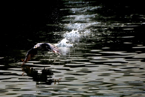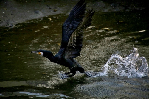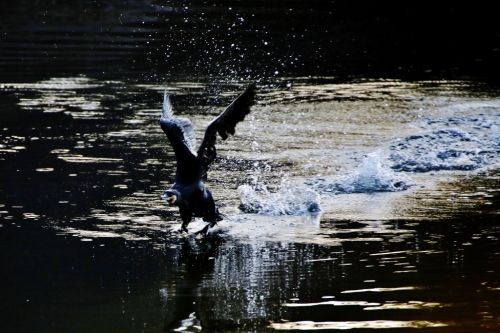 水面を何度も蹴って、、、水面から離れる。。。ほっそりさんの 鷺 ふわっと身軽に飛び立ちますが、、、ぽっちゃりさんの 鵜 そぉれっ、、、て声をかけたくなってしまいます。 鵜は水に潜るので、浮力が付かないよう他の鳥に比べ羽の表面、油が少ないそうです。潜るカラダを見ると最低限?油に守られていました。羽を広げ、、、パタパタ。。。羽を乾かす鵜の姿、、、可愛く感じてしまいます。孫を連れて来たらきっと喜ぶだろうなぁって、、、(^_^;