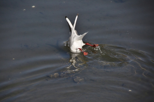 なに食べてるの? サカナ食べてるの?? サカナ食べてるって ゴカイ してました(^_^;※ユリカモメ(百合鴎)頭部が白いのは冬羽、黒は夏羽だそうです。 百合鴎夏を先取り衣替え。とり