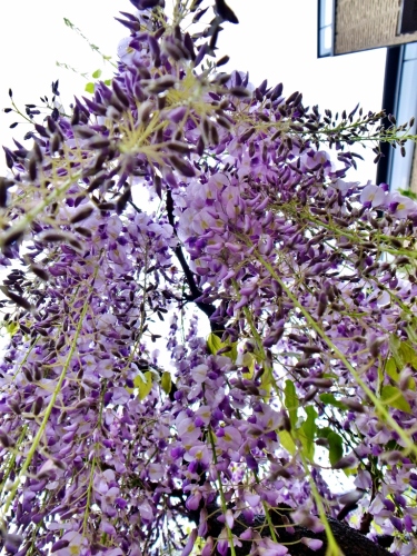 40年くらい前、、、父が植木市で買った 藤 が今、満開です。 当時、樹齢10年と聞いたので、、、今は約50年。。。 写真では大きな木に? 見えますが、、、実は。。。こじんまり と満開 (^_^;