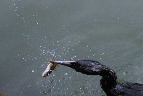 水質悪化で弱るサカナたち、、、難なく捕食する鵜!お陰様で難なく 瞬間 を撮れるワタシ(^^ゞ