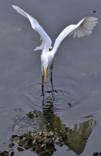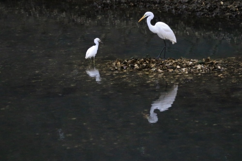 サギは狙ってます!ハゼ、、、狙われているとも知らず。まさか自分がサギの被害に遭うとは思わなかった?ハゼはサギのオナカに振り込まれ、サギ、、、ご馳走様のポーズ!なんてシャッター切りながら一人ごと(^^;