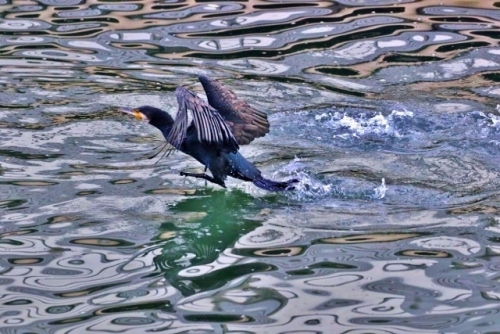 河鵜、この鳥、自分が一番美しく写る角度を知っていてカメラを向けると、、、この角度!お気に入りのポーズをとってくれます。こちらも、、、お約束のポーズ♪時にはポーズをとりながら、、、カメラに緊張?お〇らしも(^^;※撮影者の思い込みであって、河鵜お気に入りのポーズに根拠はありません;^ω^)
