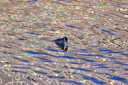 風が水面を揺らし色を混ぜる、、、淡いグリーンは駐車場のフェンス、、、無限の広がり無限のカタチ、、、風は偉大なアーティスト。。。あなたの混ぜ方にも味がありますね(;^ω^)