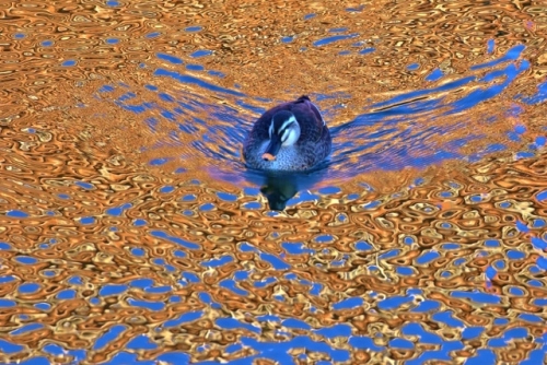 早朝の水路、初めて見る鳥。画像を取り込み調べると キンクロハジロ という水鳥でした。なるほど!金色の目 黒い体色 羽が白いで、、、金黒羽白 (キンクロハジロ)この名前を付けた人始めに 白い羽 が目についたら名前も変わっていたかも?ハジロクロキン、、、(^^;