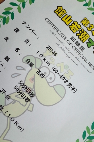 館山若潮マラソン、過去4回フルを走ったのですが、、、フルは辛いし歩いちゃうし、、、と言う事で、今回10kmにエントリー(^^;スタートラインに並ぶと、以前Aランニングクラブで指導して頂いたNぐちさんが!失礼ながら、お歳を伺うと今年70歳、キロ5分ペースで走るとの事。。。背中を追いかけますからって話しスタート!1km表示過ぎたあたり、Nぐちさんは遠く、、、4分ペース??背中が見えない。。。凄い70歳です。歩かず走り切った大会、、、フルは引退、、、これからは10Km;^ω^)
