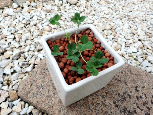 気温低く曇り空、、、炎天下では走れない海沿いコースをランニング、いつもより少し走った地点で給水。汗の落ちる先、足元のクローバーに目をやると1本の茎に4っ葉、5っ葉が~♪クローバーは茎から根を生やすことが出来ると聞いていたので茎ごと持ち帰り植えました。見つけられたのは曇りが幸い、給水場所もいつもより先の地点、導かれた?良い様に解釈(^^ゞ4っ葉5っ葉、発生率が高い株に育つか?楽しみです。