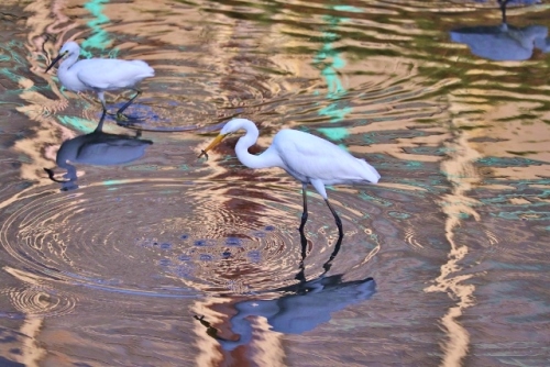 サカナを探し水面を覗き込み、顔を前に後に。シャッターを早く切りたいのに、なかなか行動に出てくれません。その時、白雪姫、、、おきさき様と鏡の会話が流れました。。。鏡よ鏡、鏡さん世界で一番美しいのはだ~れだい?鏡、、、振り込みが確認されたら教えるからね!振り込んでね サギ って。。。ちゃんちゃん(^^;