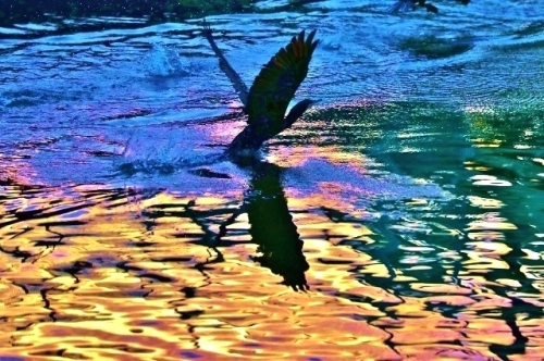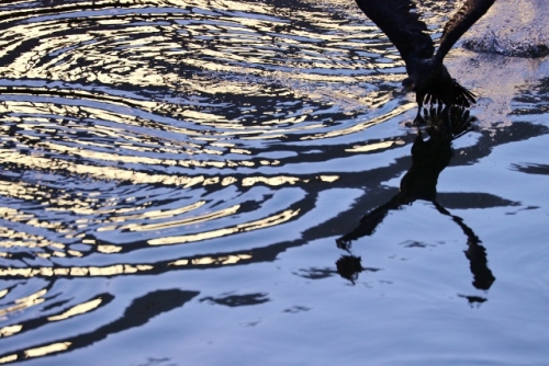 轍(わだち)車が付けた車輪の跡ですが、、、水面を 蹴って 助走した跡これも 輪立 だなぁ って思いました。