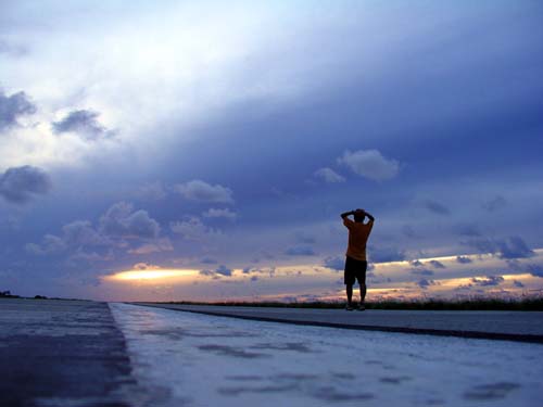 滑走路東側、端まで行くと昇る朝日と鳥の群れが見られます。