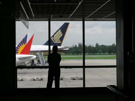 で、バンコクに到着したSQ便が駐機場に向かう途中に目に入った光景、これには驚かされました。