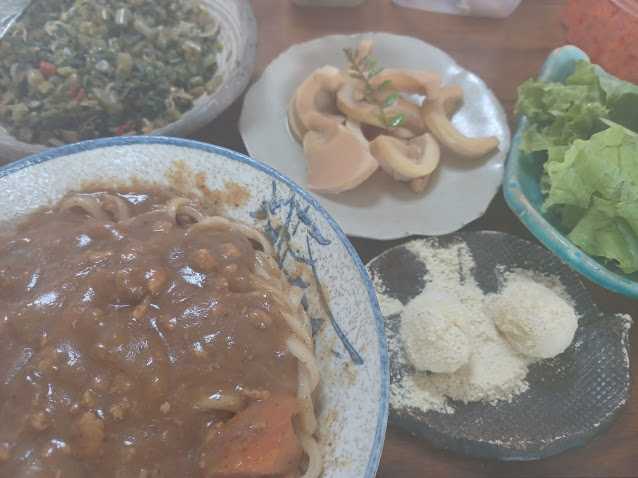 この頃買い物に行ってなく~家にあったありあわせで・・作りました。お友達が見えたので・・お昼にね!冷凍庫にあった卵焼き、サーモンと合わせ・・超簡単に~既製品でしたが・・ でも美味しかったです