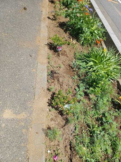 やむなく代表となったこの花壇の場所です。長さは100メートルもあり!長い~やるきゃないのですが・・昨日は連休中のせいかな?少ない人数で花を植えました。ツツジが20株、ヒャクニチソウも20株と!植え終わりました。動くと暑かったので・・熱中症も気を付けながらです~ お疲れ様