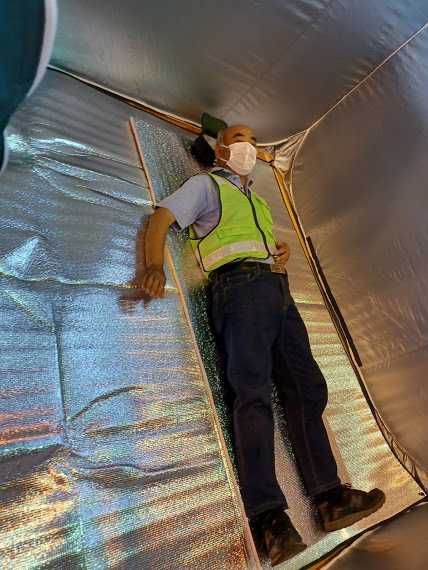 各町内会の方々5名の参加と聞いてます。それも市のはずれの小学校へと!余り多くはなったけど・・折り畳みのテント?パーテンションと言ってた?ファミリー用かな?メンバーさんが寝たところです!それを出しては、たたむ練習をやりました。出すのは簡単でしたね。たたむのはちとコツが言ったようにも?二人でやるとたためます。悦明を聞いていて・・すーずと2時間ほど立ちっぱなしで・・たぶん皆さんも疲れたことでしょうね! お疲れ様でした