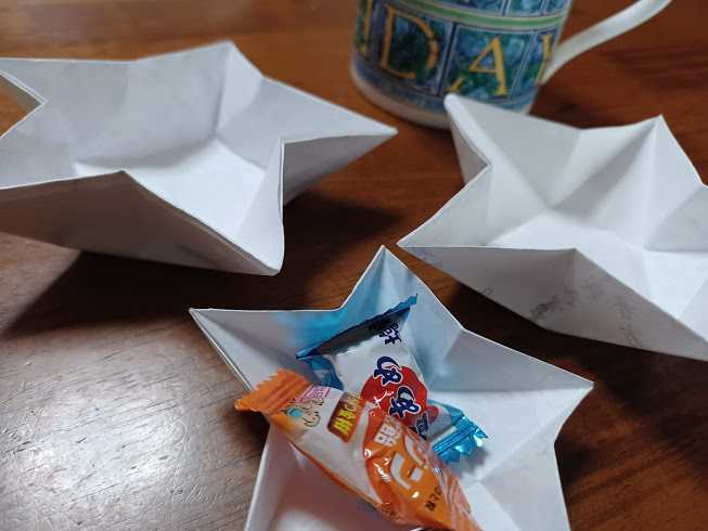 またお友達が折り紙で星のお皿を。何度もやっているけど・・なかなか覚えれません。困ったなぁネットで調べたら・・出てたので・・ ゆっくりと覚えよう