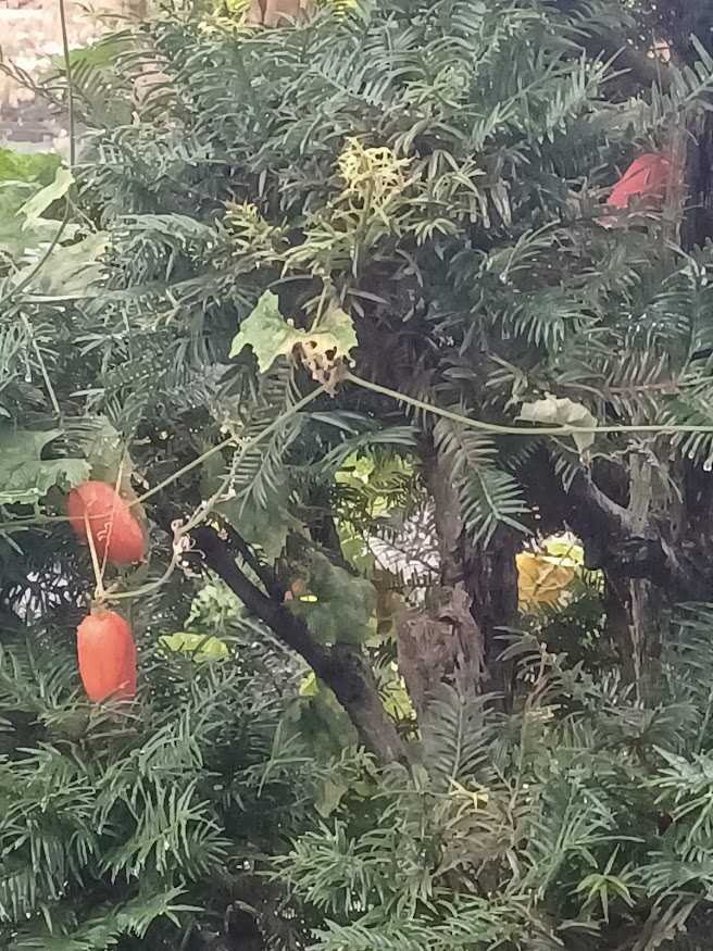 巷の烏瓜も赤くなってきてます!お寺さんのも赤くなり~携帯で写しました。 鐘楼から