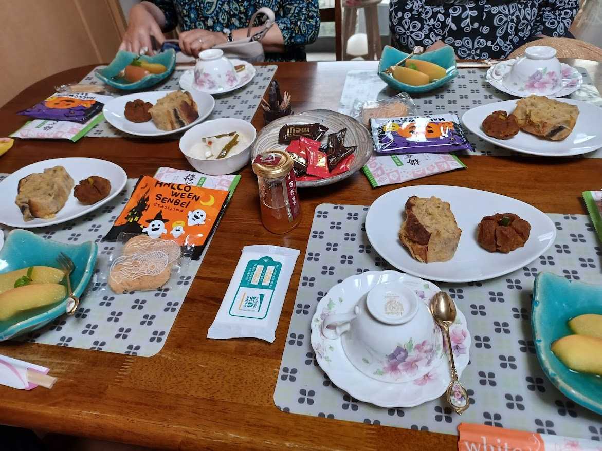 先日花壇の手入れ作業の終わりに・・お茶のみをしようと言っていたので・・その約束を・・我が家で・・朝からバナナケーキを作った!忙しかったが・・頑張りましたぁお互いにお喋りで・・情報交換なども・・ 楽しい時間を過ごしたかな?