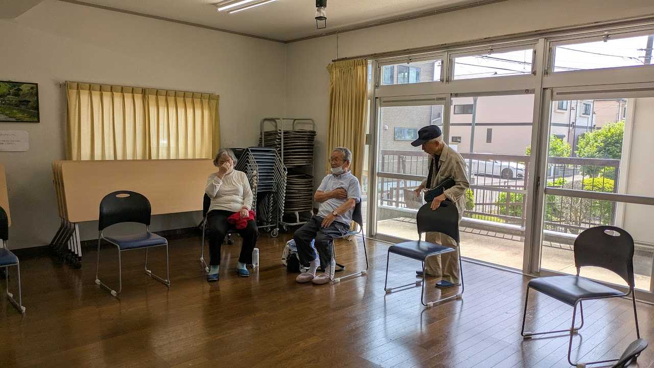行ってきました。体操を終え、お茶の時間!毎回ここの会は・・お花を飾ってくださいます~折紙今回は金太郎さんです~ちょっと遅かったかな?5月中ならいいかなと!?皆さんも出来上がりました。お茶の時間に・・個性豊かな顔を書いたりしている方もいて・・バナナケーキを作りました。楽しい遺憾を~ 有難う!