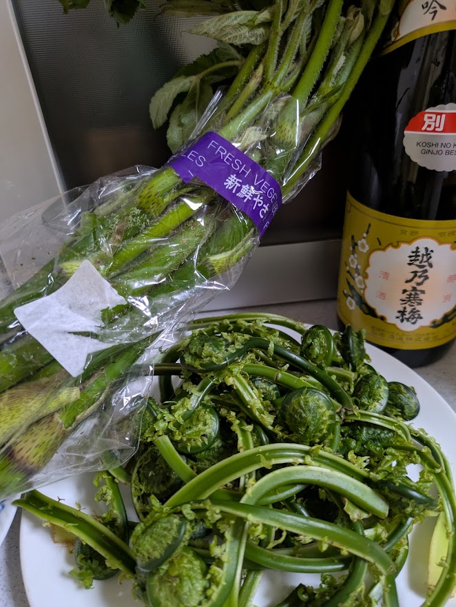お昼にコゴミを調理したのです。超簡単にボイルし・・サラダでいただきました。見た目はね・・虫みたいに??山菜です!美味しく頂きました。 ご馳走様