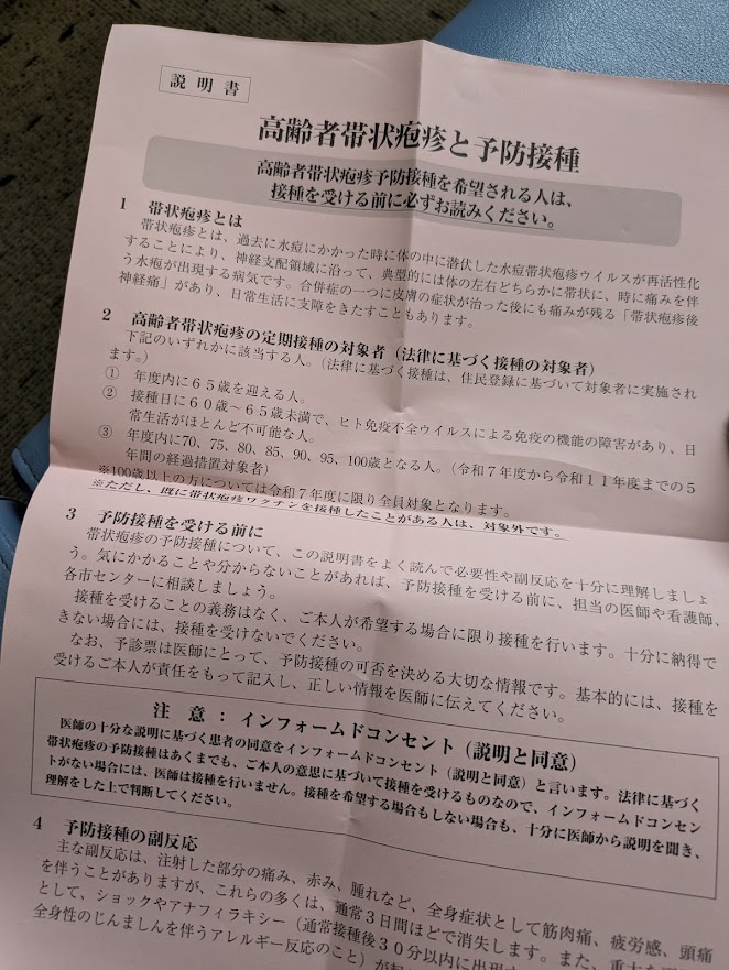 市より案内が来たので・・打つ事にしました。帯状疱疹になった方を何人か知っているので・・とても痛がって・・今だに後遺症が残っているとの事!見ていても可愛そうです。 ほっとかな