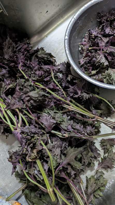 お友達から頂きました。沢山の赤紫蘇とモロヘイヤ!枝豆も・・後はシャドウクリーンという紫色のジャガイモを・・サラダにしました。枝豆も・・今夜のおつまみにです~ ご馳走様