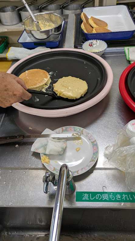 今回は皆さん最後のお料理でした。と言っても会わないわけではありません。場所が使えなくなるのが原因。仕方ないですよね。皆さんでお喋りも楽しみ・・今回はホットケーキでした。作り楽しみましたぁまた会う日まで♪元気でね・・シングル会は毎月やりますので・・ 逢えます