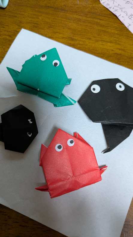 朝から雨が降ってました。じめじめし、湿気のおい日です!御寺から戻りPCをチェックしたら・・草刈りは中止と会った。ホッとして!午後から行く場所の折り紙を復習してた。”ぴよんぴよんカエル”を折ります~その子供もね。オタマジャクシです~でこれは超簡単ですが・・カエルの方はちと大変かもね!このカエルさんはひっくりカエルでしたぁ損保ケアーに行き・・折紙をしました。脳トレは今回する時間が無くなり!残念でしたが・・ 来月という事で!