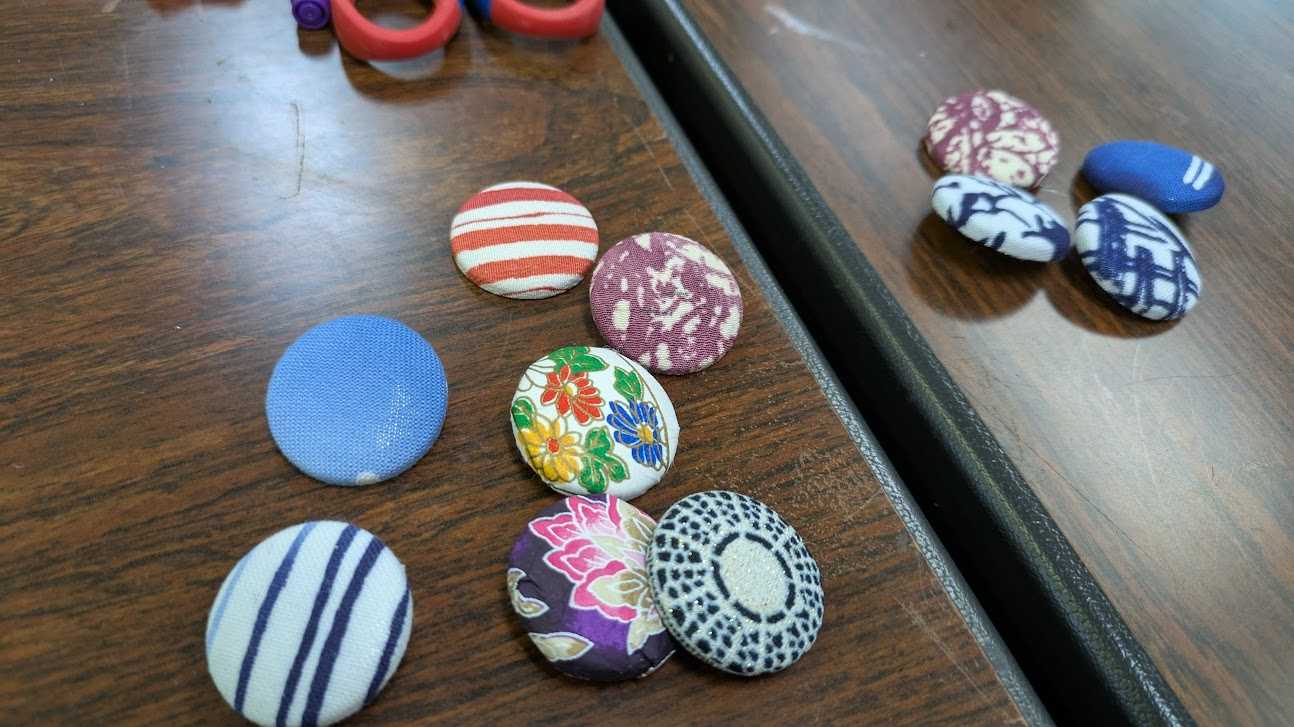 ここはM会が主催でした。月二度参加してます~無料で参加出来!皆さんとはM会で顔みしりで。今回はやったことがない・・クルミボタンでした。トロは初めてです~色々作ってきました。これをどうするのかな? 考えてみてと?
