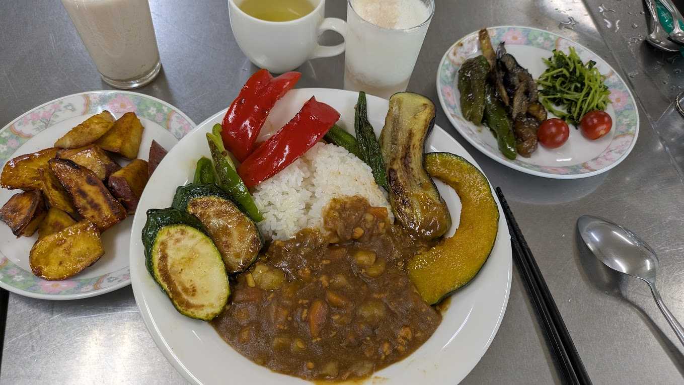 今回も少ない人数でのお料理!7人集まった。夏野菜カレーを作った。デザートは大学芋とお団子でした。野菜お米も高いが・・家にあったものを持参しているので・・皆さんの負担は少ないお茶の時間もあり・・お喋りに花が咲いてました お疲れ様でした