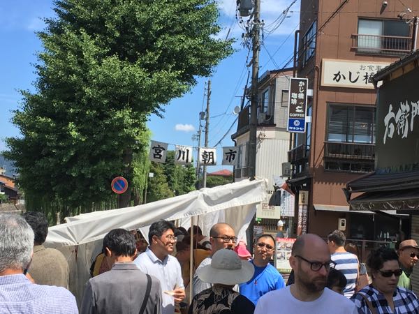 高山の宮川朝市に行ってきました。 高山は外人観光客が多いが日本人の 年金暮しのような人も沢山歩いてました。 岐阜県が観光客で潤うことは、いいこと。 朝市で漬物を買い込みました。 なんといっても赤蕪です。 還暦オヤジは来年もまた来ると心に誓いました。